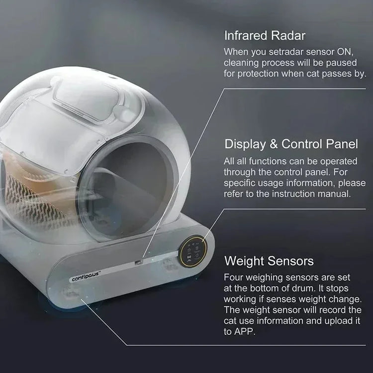 Self-Cleaning Mechanism: Automatically removes waste for a cleaner environment.